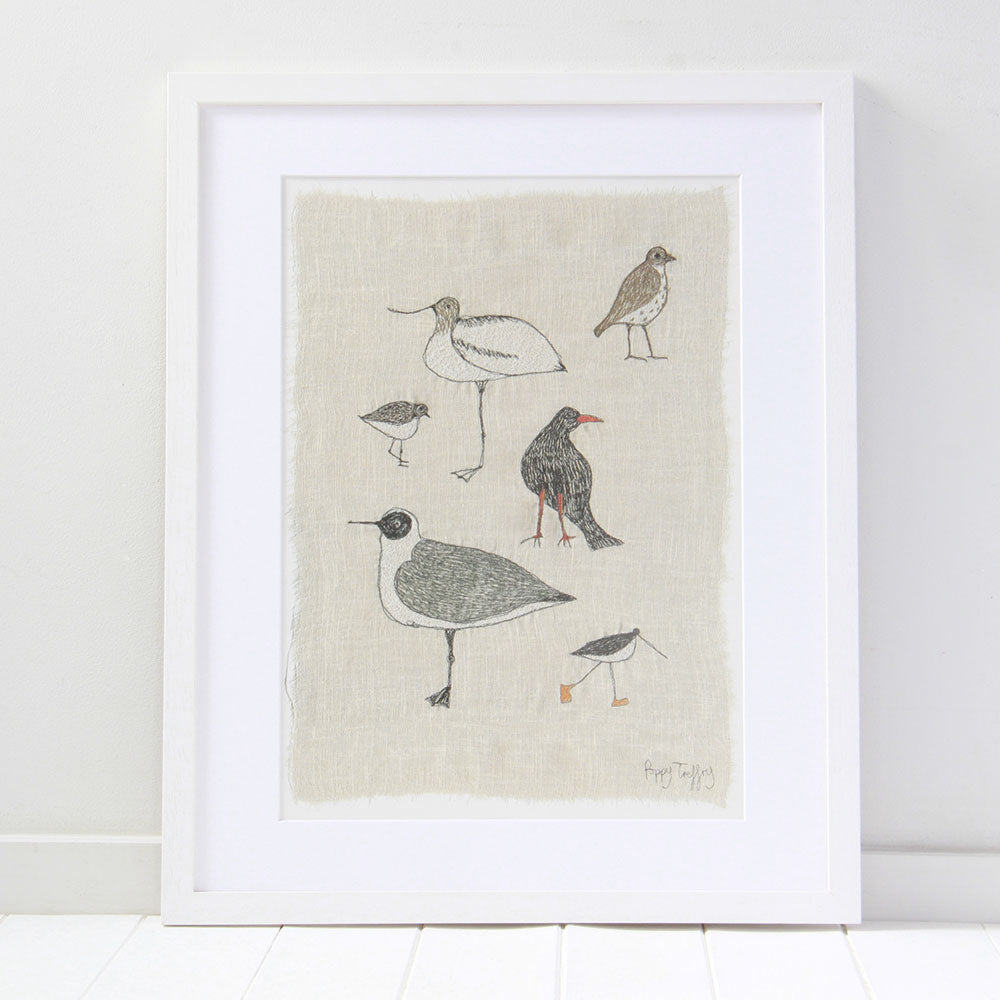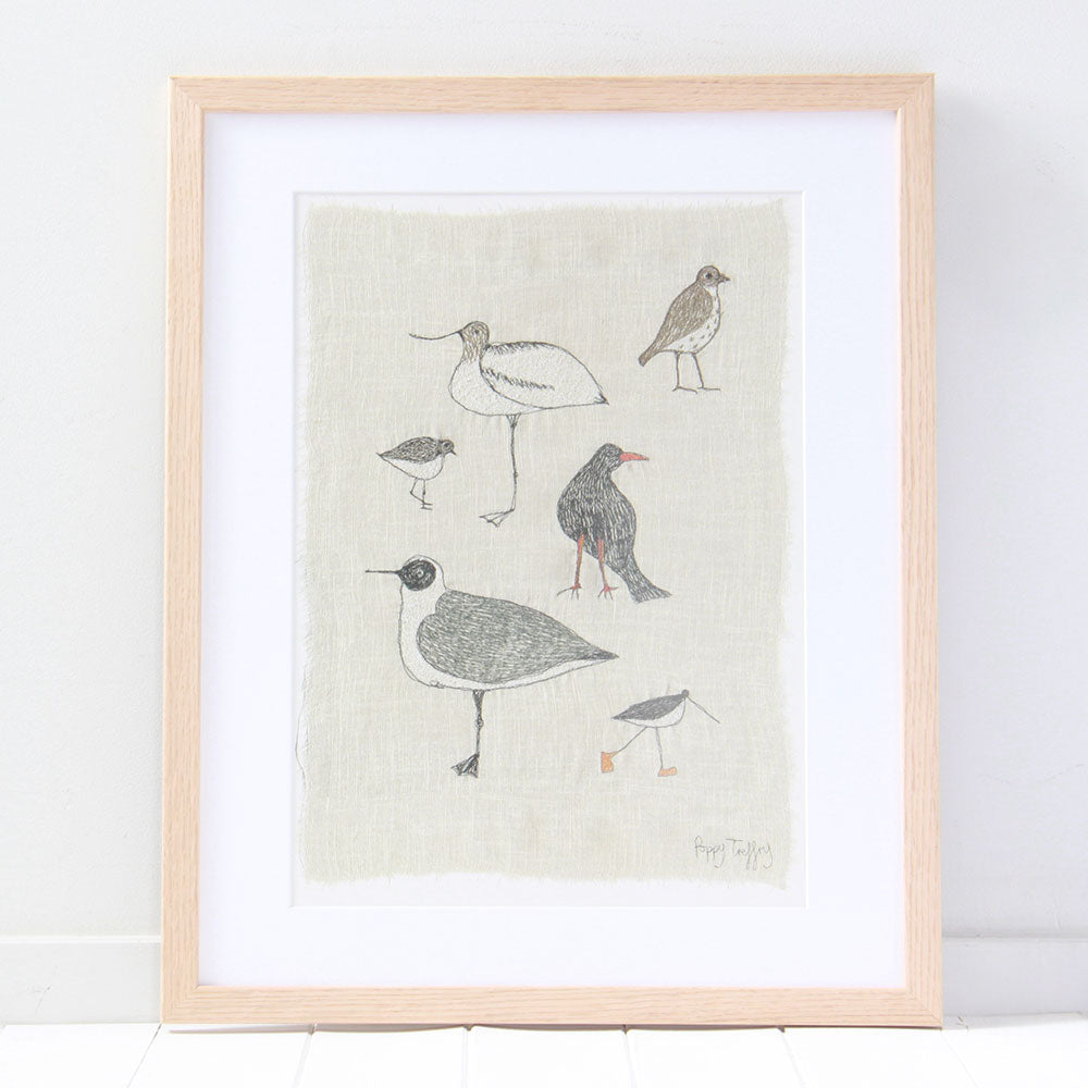 Featuring the Cornish Chough, black-headed gull and her trademark Oyster catcher as well as other types of coastal birds, this print would look lovely in a study, kitchen or bathroom.