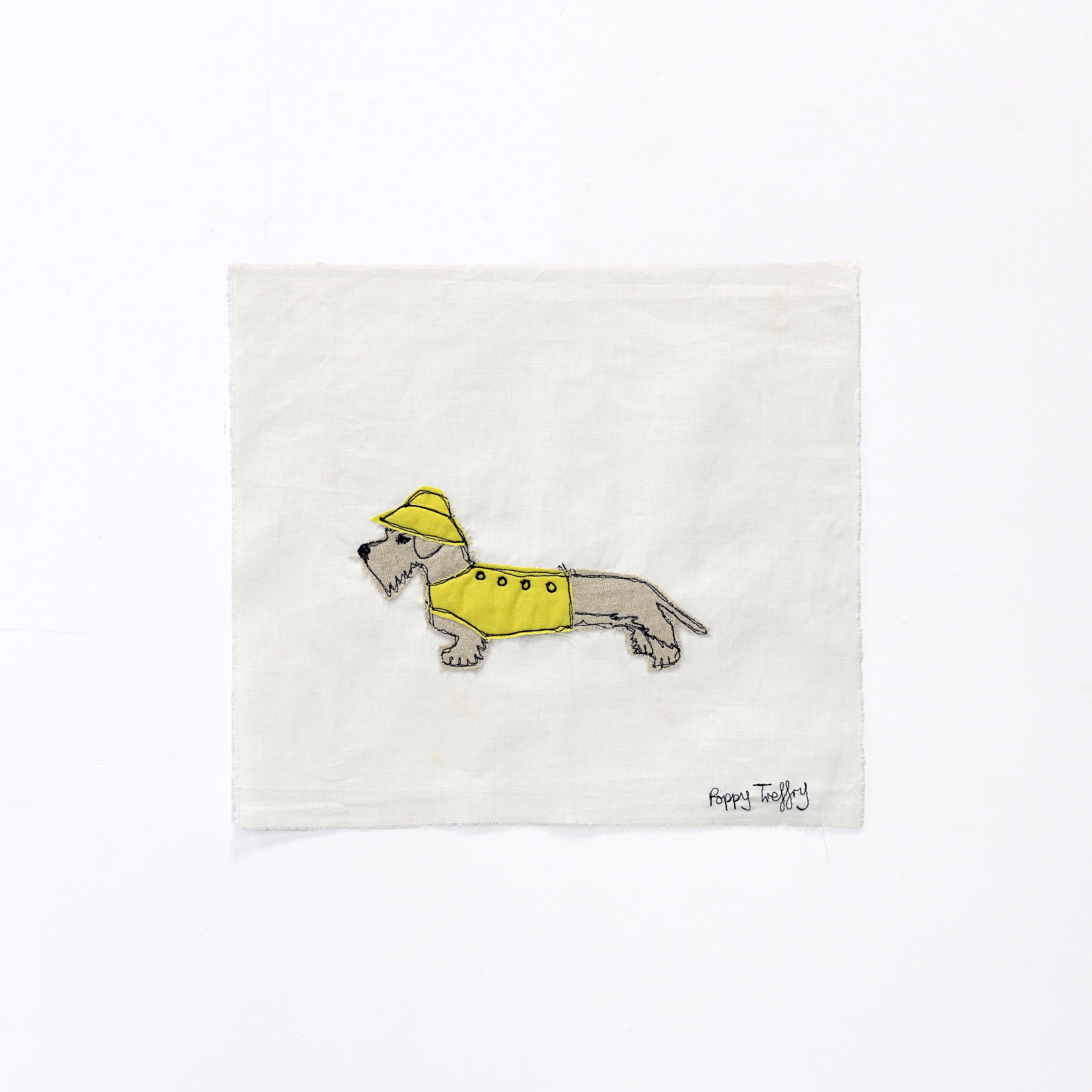 Originally designed for a greetings card, this little Dachshund - with his signature sou’wester hat - is a longtime favourite of Poppy’s. He’s now ready to find his forever home and take pride of place on your wall.